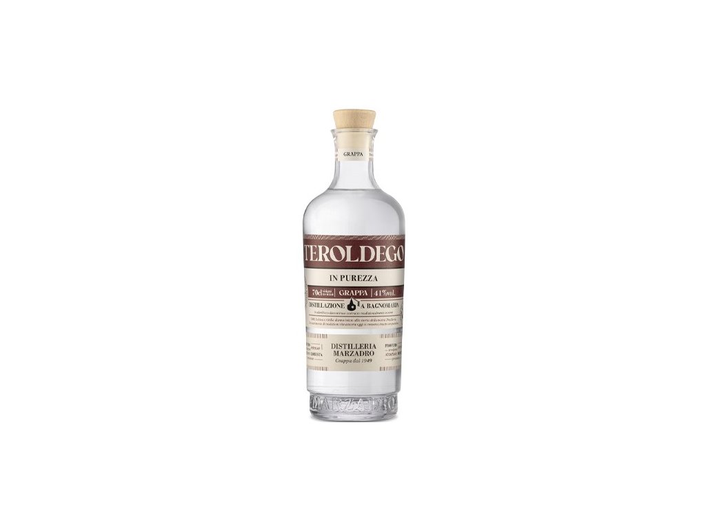 Grappa Marzadro Monovitigno di Teroldego vzniká z odrůd Teroldego typických pro region Trentino. Destilát nabízí plnou chuť s ovocnými tóny a jemnou strukturou. Je elegantní, vyvážená a vhodná k vychutnání po jídle.